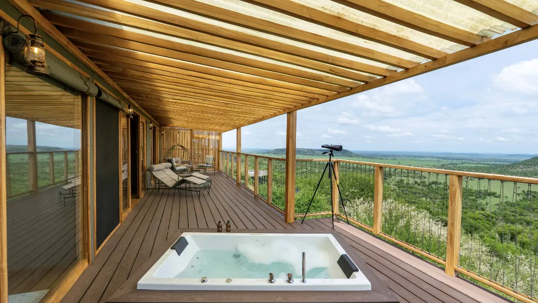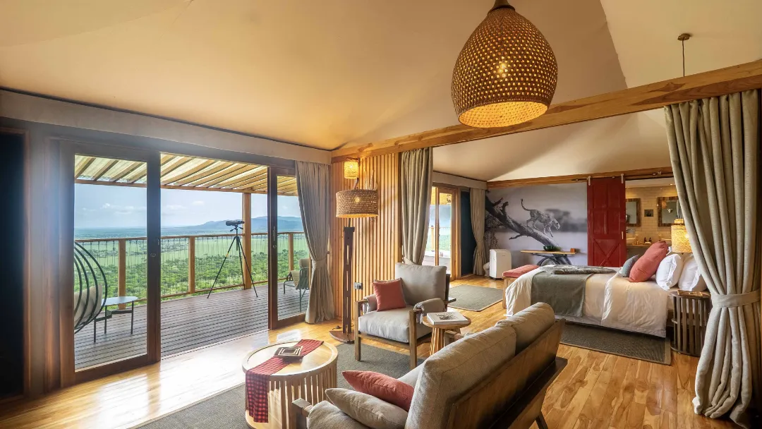 Surrounded by lush vegetation that remains vibrant also in the dry season, Neptune Serengeti Luxury Tented Camp ensures a lush and green landscape all year-round. Covering 2 Km2, it is situated on a hill, offering breathtaking views of the Mara Region plains. The Camp provides a prime vantage point along the path of the annual Great Migration, occurring twice a year and offering stunning sunrises and partial sunsets